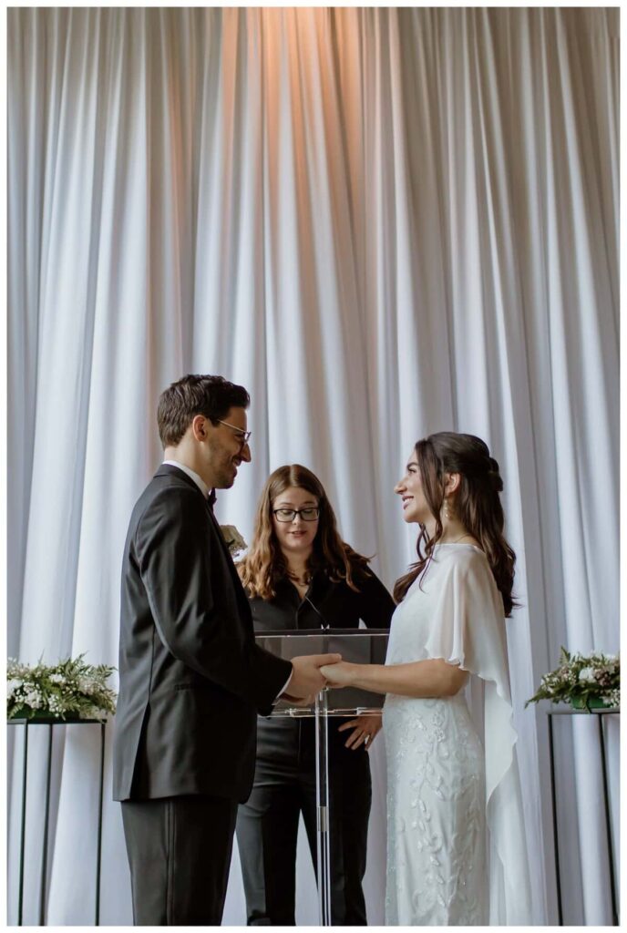 After family photos, Antonella and Kevin took a quick breather before greeting their guests. A couple pro tips: I always recommend building in extra time for photos so there are moments of calm and quiet, and we’re not rushing from one thing to the next. Allow yourself space to be present – it makes a difference.