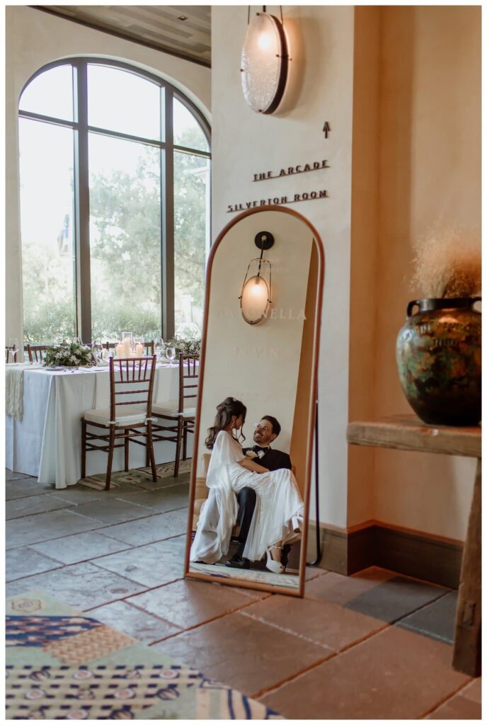 Antonella kept coming back to one word – soul. “We want something with soul,” she said more than once, and I loved that about her. Nothing cookie-cutter, nothing forced. Bowie House wedding venue ended up being the perfect fit! Offering that Fort Worth soul without tipping into touristy Stockyards territory. With several ceremony and reception spaces to choose from, Antonella and Kevin went with the “Arcade Room,” which they felt had the most character – and soul – for their micro wedding. I couldn’t agree more.